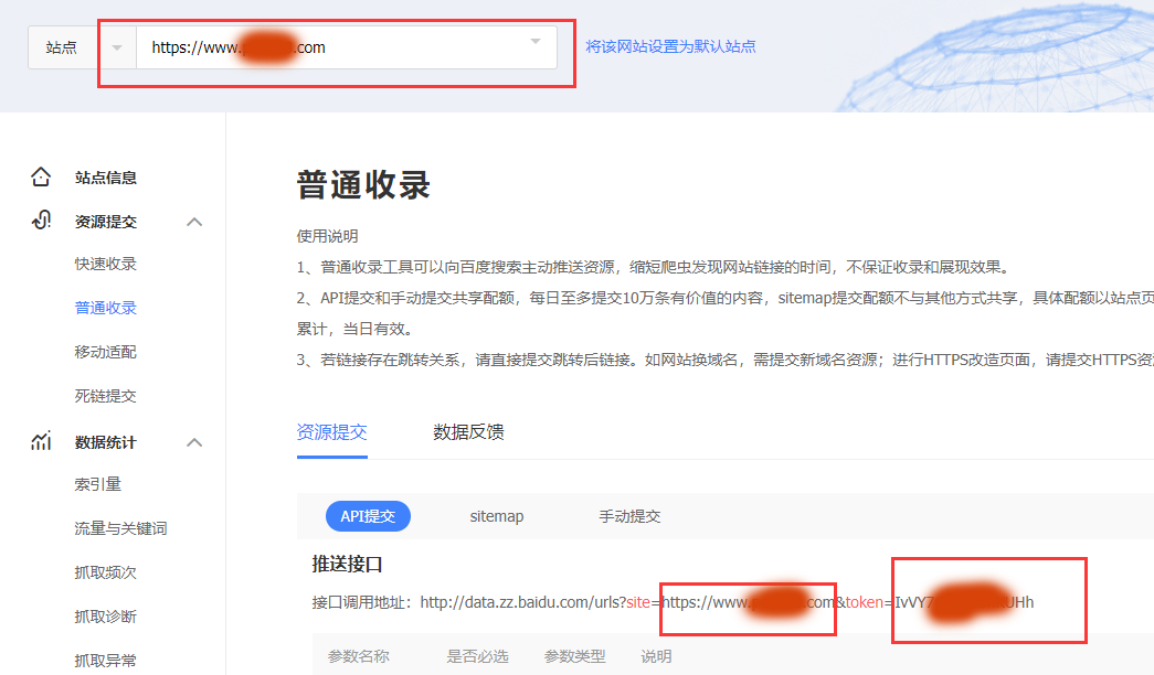 API推送:最为快速的提交方式,建议您将站点当天新产出链接立即通过此方式推送给百度,以保证新链接可以及时被百度收录。